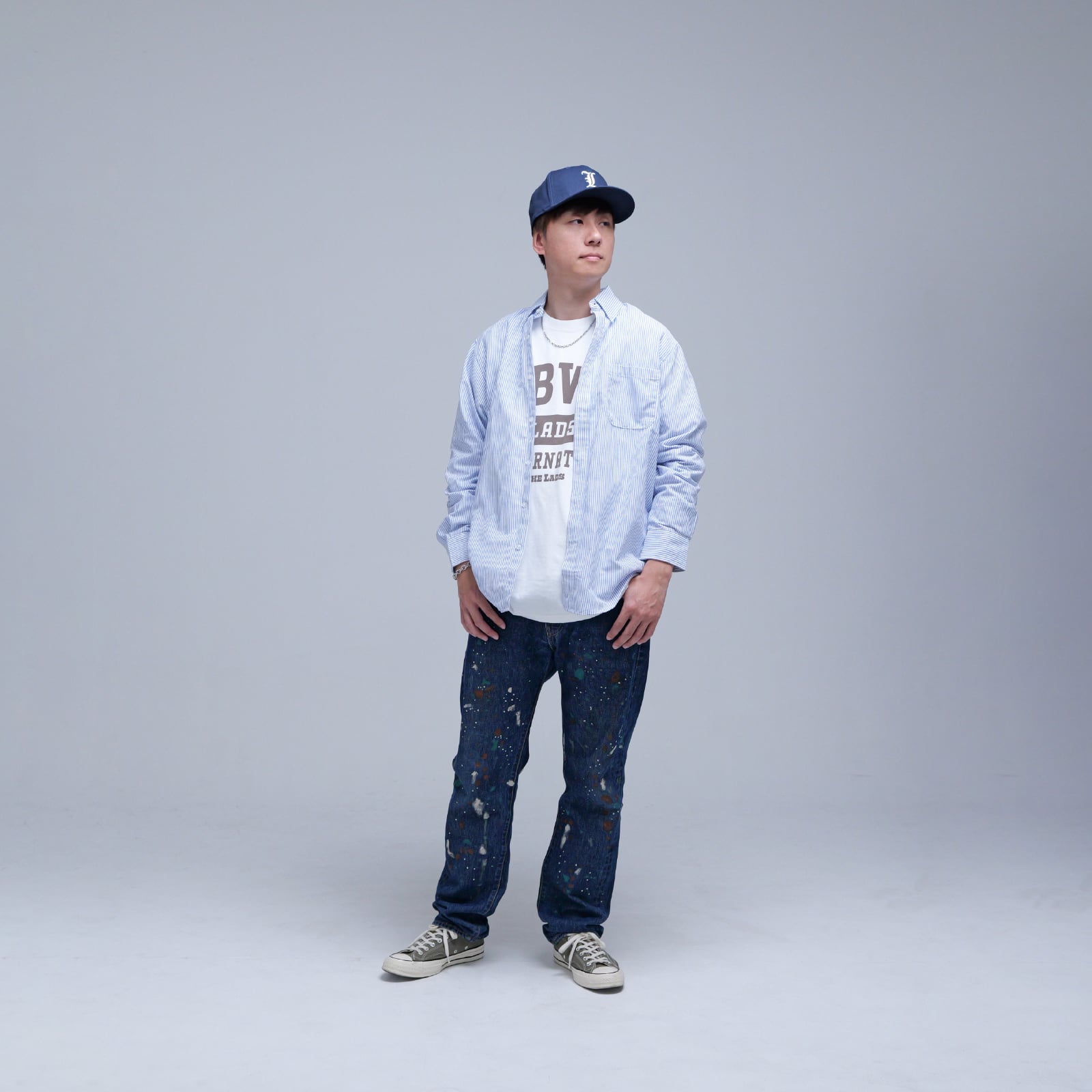ガーメントダイを施した6.6オンスのタフなボディに生地に馴染む染み込み風プリントは、着込むほどにエイジングを味わえます。