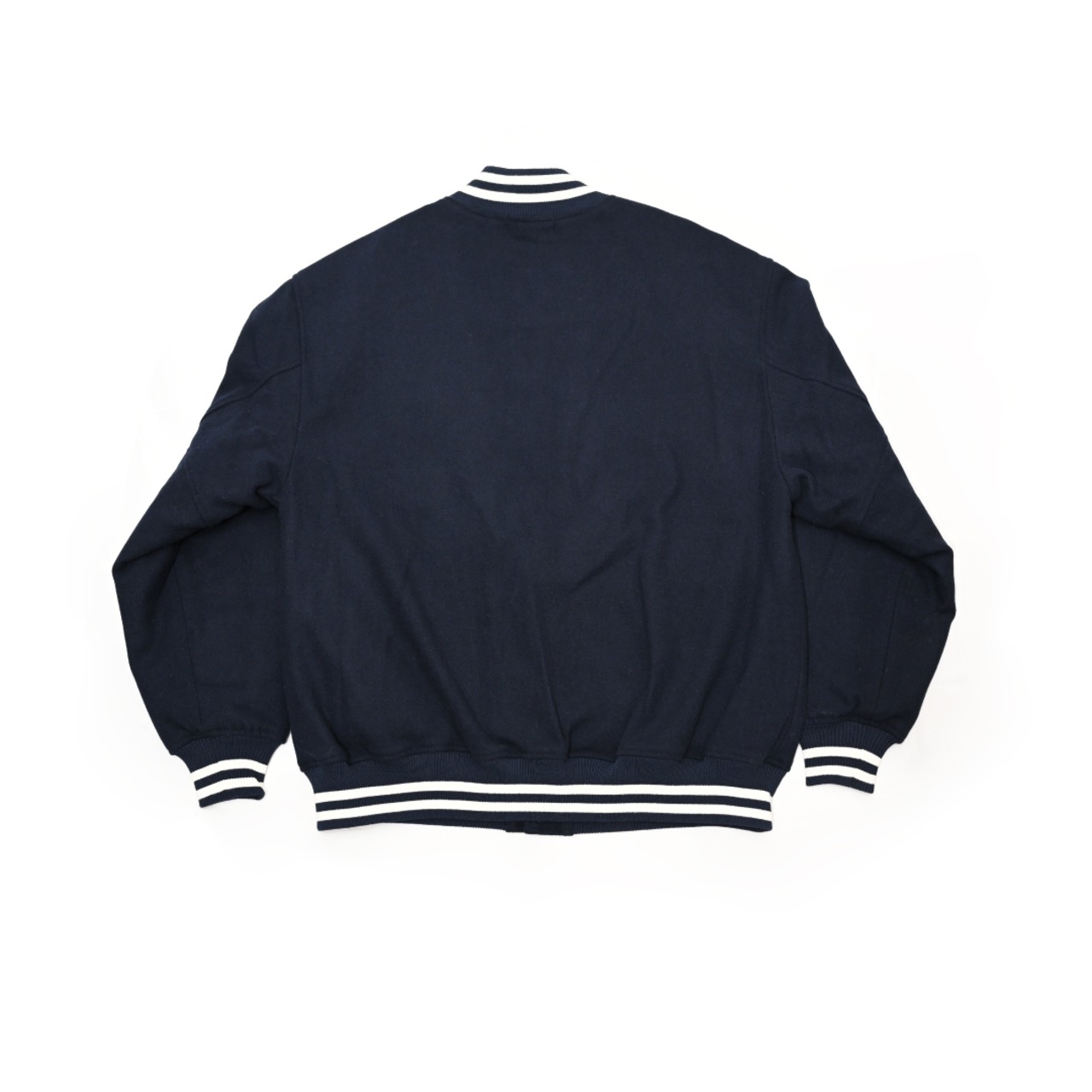 デイリーウェアとしての着用を意識し、ウールとポリエステルを混紡した軽量メルトン地を採用したスタジャンです。重みを感じさせない着心地を実現しました。